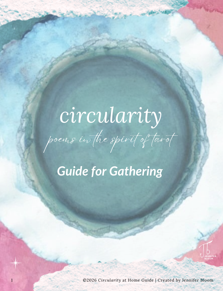 I created this guide as a companion to my book, circularity (poems in the spirit of tarot), and the premiere performance to celebrate its launch. While you can use this guide for personal reflection, my intention is to offer you a tool to bring people together in a meaningful way, to make space for reflection, conversation, and the kind of connection that happens when we slow down and listen to the whispers of our soul.